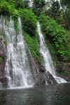 In gruppo e in motorino lungo un sentiero nella jungla arriviamo a una magnifica cascata Air tenempong...