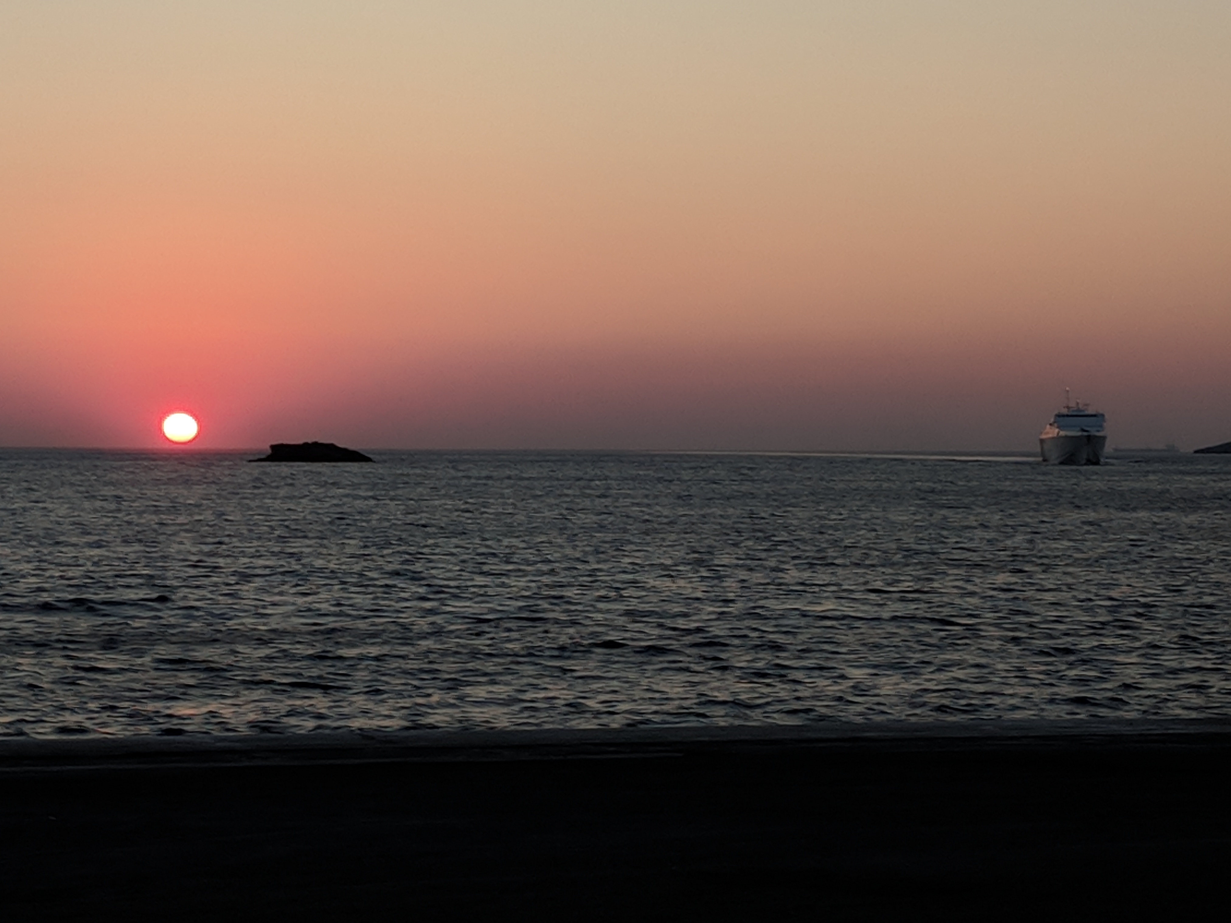 Alle sei e mezza puntuale parte il traghetto per Lavrio. C'è vento e mare mosso ma non si balla tanto e alla fine preferisco sedermi fuori all'aria aperta.