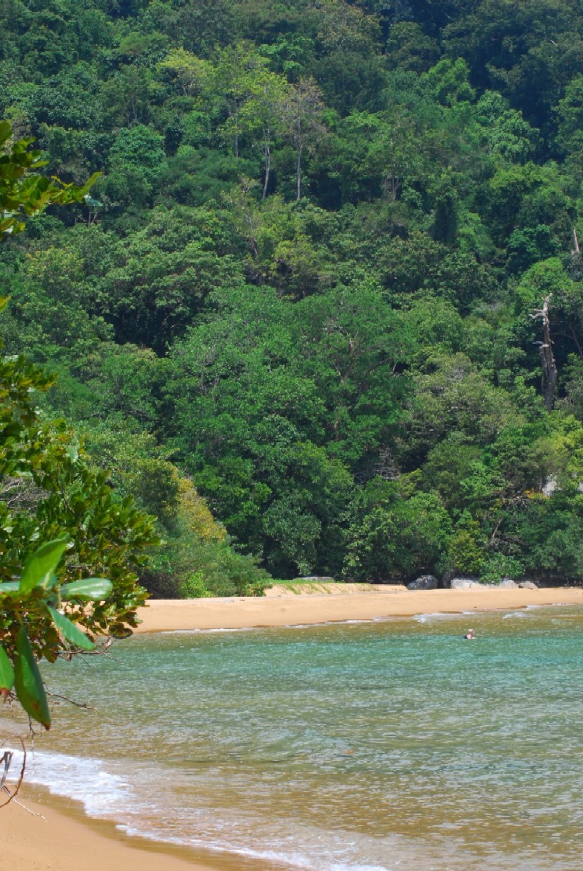 Sia noi che la coppia abbiamo una riservazione per una camera che 'stranamente' non risulta! Non ci resta che andare nel dormitorio per 20 ringgit ciascuno e dormire su un letto a castello senza bagno né rete anti zanzare che è disponibile a noleggio. La piccola e stretta baia ha una spiaggetta ma è tutto molto angusto. Non è ciò che mi aspettavo ma presto troveremo 2 belle spiagge di sabbia bianca. Turtle beach e Adam 'n Eve beach entrambe raggiungibili in pochi minuti seguendo un sentiero nella jungla.