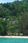 Verso sud dopo alcuni chalets (Abdul, ecc.) e un breve tratto di giungla arriviamo alla splendida 'love beach' solitaria e deserta, l'acqua ha un colore acquamarina, la sabbia ricchissima...