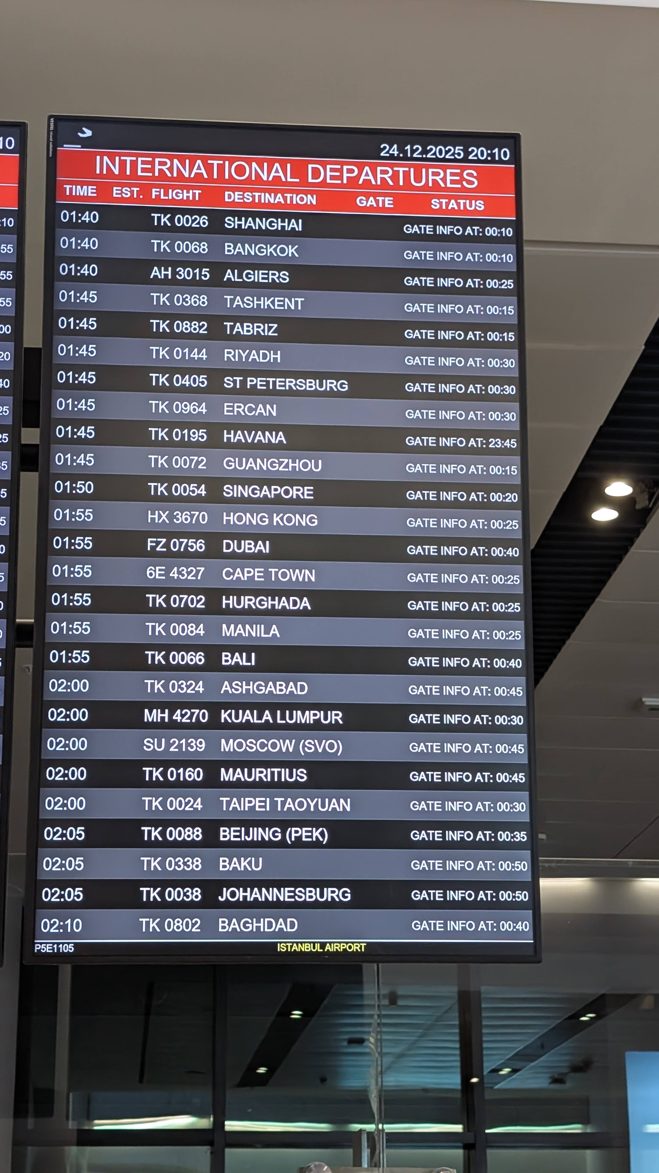 IST 19:30 TK1896 durata 3h.