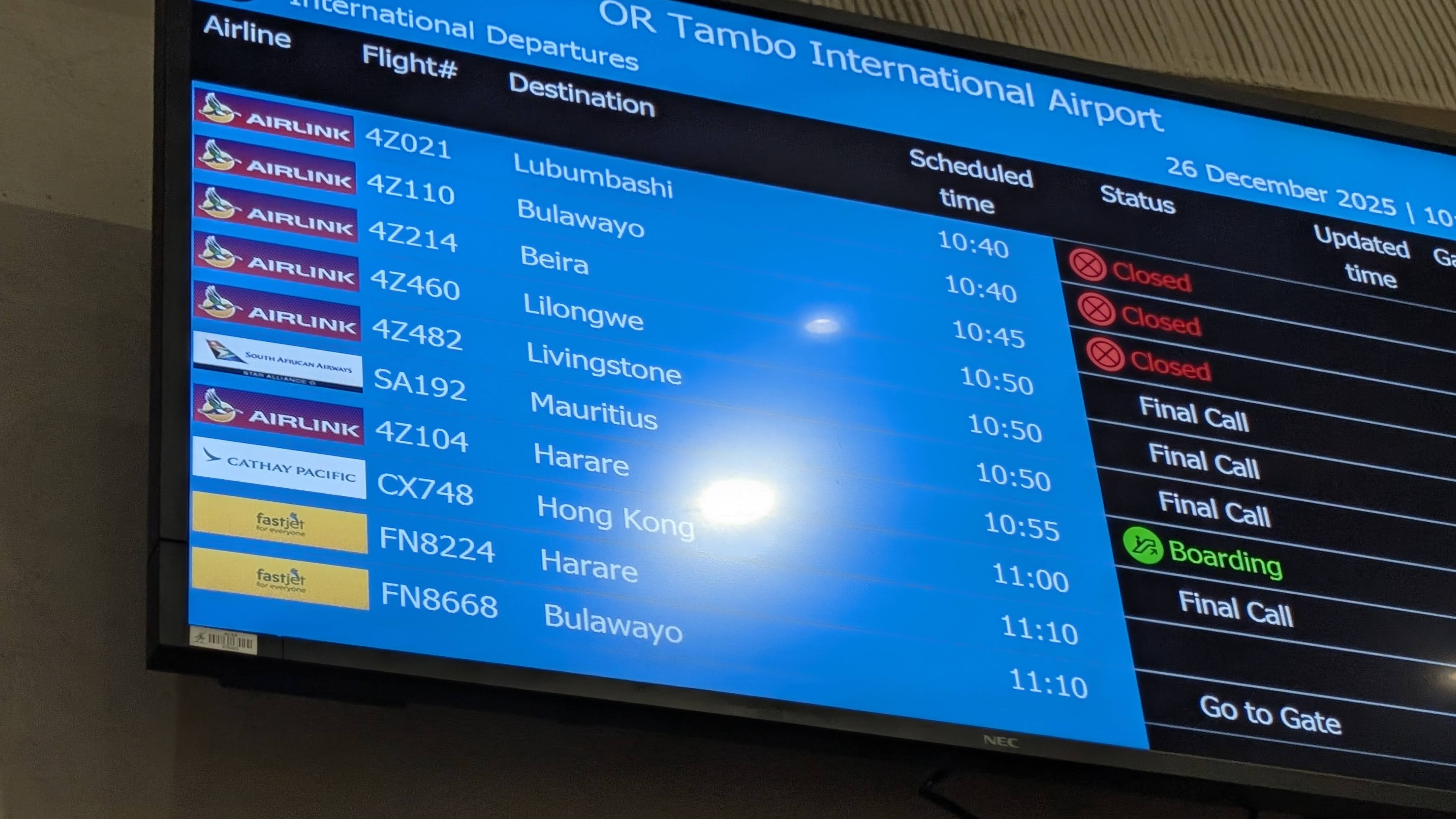Johannesburg-Victoria Falls Airport (SouthAfrica airlines)