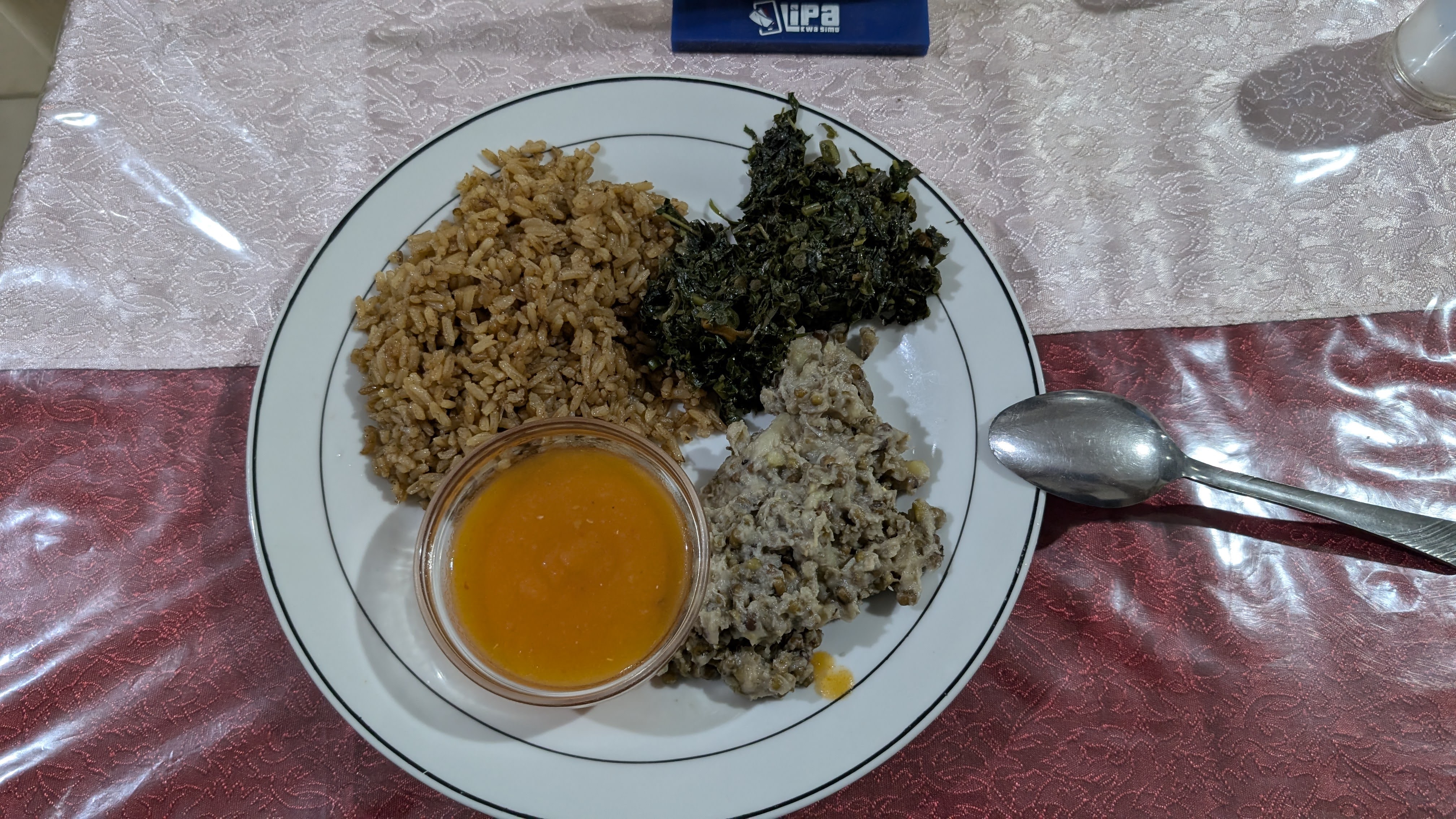 mkate = pane Duka = negozio Maji = acqua Majindi = pannocchia Samaki = pesce Nyama = carne Choma = arrostita Kuku = pollo Githeri = fagioli e mais Mboga = verdure Mchele o Wali = riso Chapo = piatto misto con cavoli, piselli e carne. Mandaazi = panzerotto vuoto Samosa = supplì ripieno (carne o verdure) Yai = uovo Pombe = birra Ndizi = banana Tikiti anguria Kisanvu spinaci con arachidi |