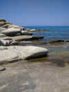 Scendete su una strada un po’accidentata e sterrata molto lentamente. Parcheggiate appena prima della taverna. Poco più in basso troverete una piscina naturale proprio sul bordo della scogliera. L'acqua del mare entra nella piscina attraverso un piccolo ponte basso. Ci si può buttare dall'alto oppure entrare dove entra il mare.