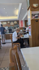 A bordo trovo posto in fondo a prua all'interno vicino al "flocafe" sulla sinistra. 4 poltroncine, tavolino e moquette.