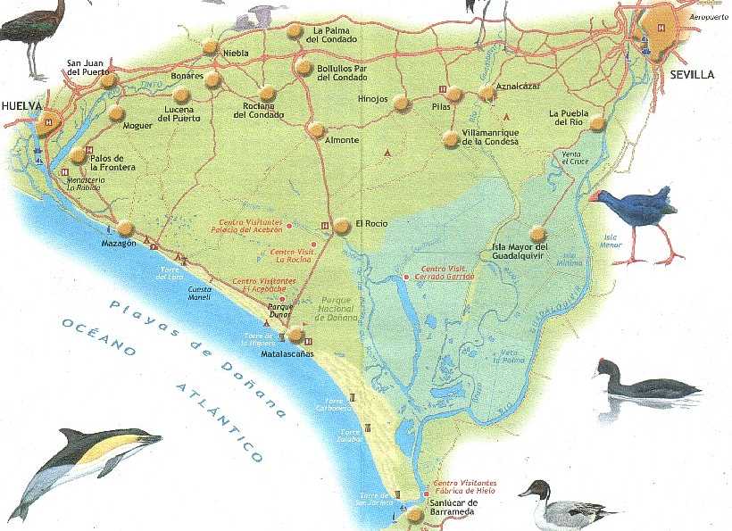 I dintorni di Matalascañas sono interessanti e vari, comprendono il già citato Parco di Doñana, la Ruta Colombina, Sevilla, El Rócio, Huelva, Almonte, Algarve, ecc.