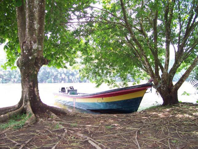 Il percorso non è brevissimo ma arriviamo in tempo per prendere il primo autobus in direzione Puerto Limon. Da lì prendiamo subito il bus locale e alle 9.00 siamo a Moin. Cerchiamo in fretta un passaggio in lancia per il Tortuguero. Conosciamo un tipo loquace ma molto simpatico che ci intorta parlando di calcio e del nuovo Papa. Partiamo di corsa perché in direzione del parco ci sono nuvoloni carichi di pioggia che non lasciano ben sperare. La costa attorno al canale è fitta di foresta di un verde semplicemente fantastico. In circa quattro ore di navigazione, solo stando seduto comodamente sulla mia lancia, già ho visto una varietà di fauna che già da sola mi fa affermare di essere capitato in un posto unico!... caimani, una scimmia urlatrice, pellicani, un bradipo, la gata blanca, lucertoloni verdi tipo iguana e tantissimi uccelli con bellissimi piumaggi colorati. Il biglietto lo facciamo di solo andata, perché il ritorno abbiamo deciso di farlo navigando il rio Tortuguero in direzione Oro Cariari. Dopo una breve sosta in una Finca lungo il rio, alle 14 siamo arrivati. L’impatto è pacificante. Ci troviamo in un villaggio fuori dal mondo, un po’ di baracche qua e là e gente che gira il villaggio scalza. Ci accoglie un amico del nostro loquace capitano di vascello che ci porta a fare un giro alla ricerca di un posto dove alloggiare. Scegliamo “Cabinas Aracari”. Una baracca ma almeno ha l’acqua calda malgrado ci siano formiche e blatte a farci compagnia. Domani andremo col sensale a fare un giro in canoa. Il pomeriggio lo passiamo in spiaggia dopo aver percorso un breve sentiero nella vegetazione. Per prima cosa ho fatto un tuffo del Mar dei Caraibi, il sole è nascosto ma sento la pelle già calda… meglio coprirsi. La playa è selvaggia… il mare è mosso… Di notte proprio in quel tratto di costa ma purtroppo non in questa stagione, nidificano le tartarughe, che liberano migliaia di uova che schiudendosi sono un vero spettacolo di vita. Scambiamo quattro chiacchiere in spagnolo con due turiste svizzere seduti su un tronco portato dal mare. Adoro le forme arrotondate che assume il legno reso liscio dal sale e dal vento, che muove la sabbia, che a sua volta lo smeriglia modellandolo in forme armoniche. il sole si è nascosto dietro le nuvole ma il calore si sente sulla pelle secca di sale. Meglio coprirsi. Tornando facciamo un giro in mezzo alle palafitte e baracche colorate del villaggio come le amache piantate dappertutto. È pieno di bambini che giocano e corrono. Incontriamo Angel col quale pratichiamo un po’ di spagnolo. Lui è in compagnia di un amico detto “Zapata” e tutti e quattro insieme andiamo alla ricerca del “Bananero” col quale concordiamo il ritorno per Oro Cariari a 10 USD.
