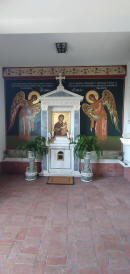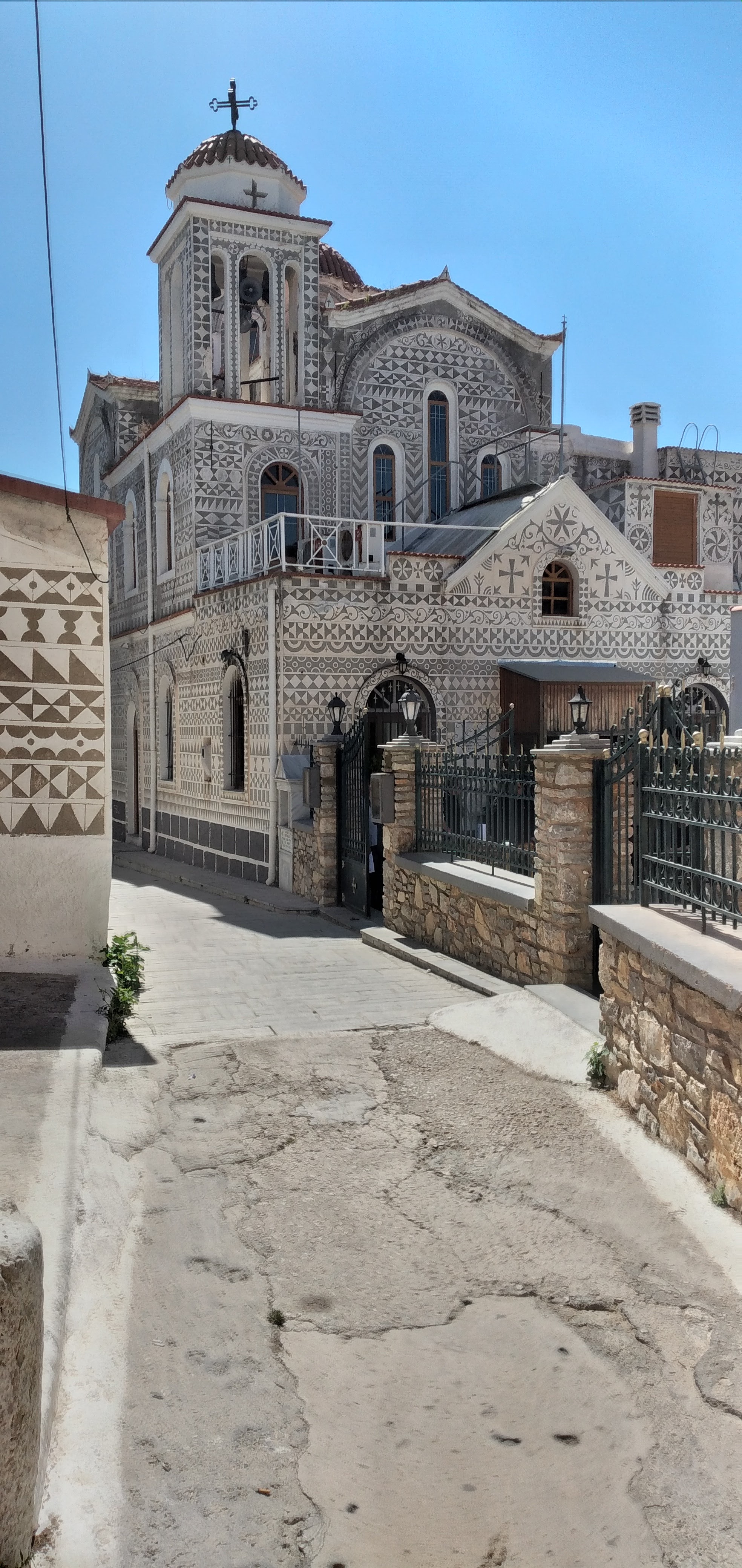 Sbarcati dalla Oinousse III e noleggiata l ‘auto da manolis rent a car ci dirigiamo al nord dell ‘isola di Chios e ci fermiamo al Virgin Mary Myrtidiotissa Monastery Mirsinidio che troviamo incredibilmente aperto per