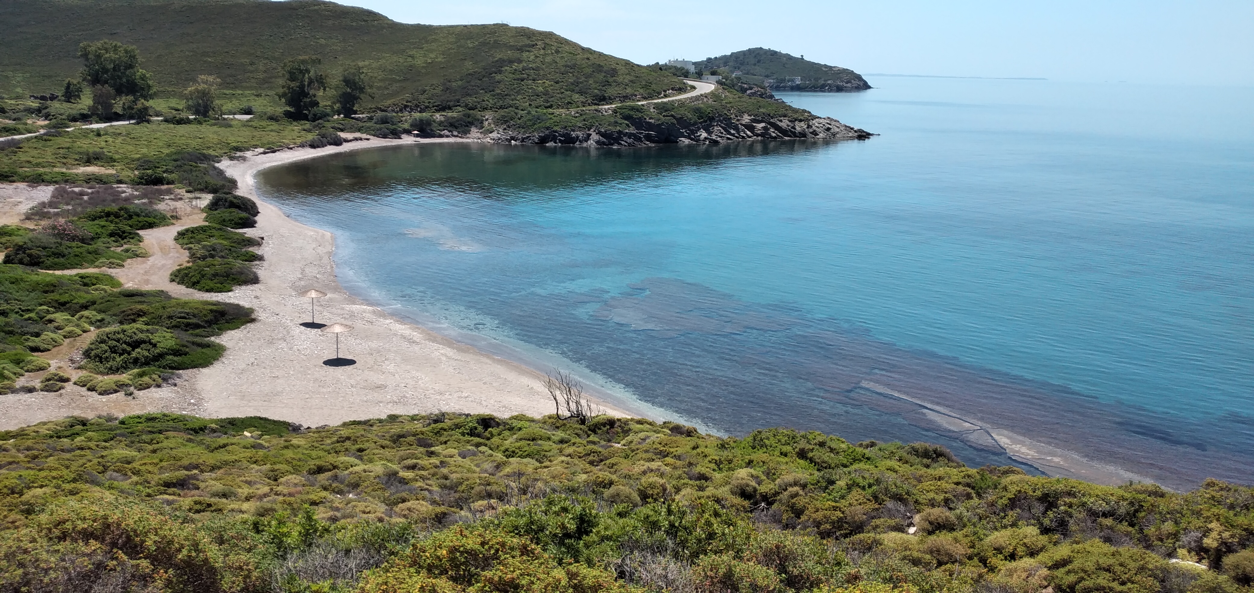 Ci vogliono circa 40 minuti per raggiungere la spiaggia di kastro. Dopo la spiaggia di Bilal si prende la strada a sinistra che corre alta sopra la spiaggia di Fasoli. Due chiese fatte costruire dagli armatori e poi, la strada piega a destra in mezzo a piante di fichi e arbusti profumati. La spiaggia è lunga e di sabbia ed è la più bella di Oinousses. Ci sono i soliti ombrelloni di paglia, ma anche un po’ di ombra di arbusti dove ci ripariamo nelle ore più calde …e fa già davvero caldo in questo fine maggio ! Rientrati a casa prepariamo il bagaglio e ceniamo sul nostro terrazzo. 1 giugno 24 la Oinousses III parte quasi puntuale alle 8 carica di abitanti dell’isola che raggiungono la città di Chios per compere o …chissà…Rientreranno con la stessa nave alle 14. Il costo del biglietto è di 5 € e la traversata dura circa 50 minuti. Per il resto della vacanza a Chios abbiamo noleggiato un’auto da Manolis carinfo@chiosummer.com e alle 10 siamo pronti per scoprire l’isola nei nostri restanti 10 giorni qui. Considerazioni su Inousses : ero stata molto incerta se venirci, ed invece è stata una piacevole vacanza per noi che amiamo camminare e stare in posti non affollati . Bella l ‘atmosfera ancora genuina con gli abitanti .In rete si trovano giudizi nemmeno velati che la indicano come isola di armatori che NON vogliono turismo. Noi non abbiamo avuto questa impressione, ma quella che l’isola si sta approcciando ora ad accogliere sicuramente NON un turismo di massa. Da vivere per qualche giorno , ma non per una giornata mordi e fuggi.