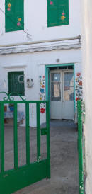 Oggi è il nostro ultimo giorno di vacanza a Chios e prima di andare in spiaggia passiamo ancora una volta da Pyrgi. C’ è movimento, ma non è solo quello della domenica. Molte persone hanno un sacchettino bianco ed escono dalla chiesa. Incuriosita cerco di capire chiedendo e capisco che è l’equivalente di una nostra messa di ricordo. Dopo 40 gg dalla morte si officia questo rito e si dona un pane ( o simile ) a ricordo del defunto. Sapevo che secondo il credo ortodosso ci vogliono 40 giorni prima che l’anima salga in paradiso… Accanto alla chiesa principale, l’unica panetteria vende anche i miei amati lokoumades . Li avevo cercati in giro senza trovarne…ora, con un caffè fatto portare dal bar vicino dalla titolare della panetteria, sono soddisfatta. Peccato solo non essere riusciti ad inseguire il camioncino che vendeva” kerascia”…