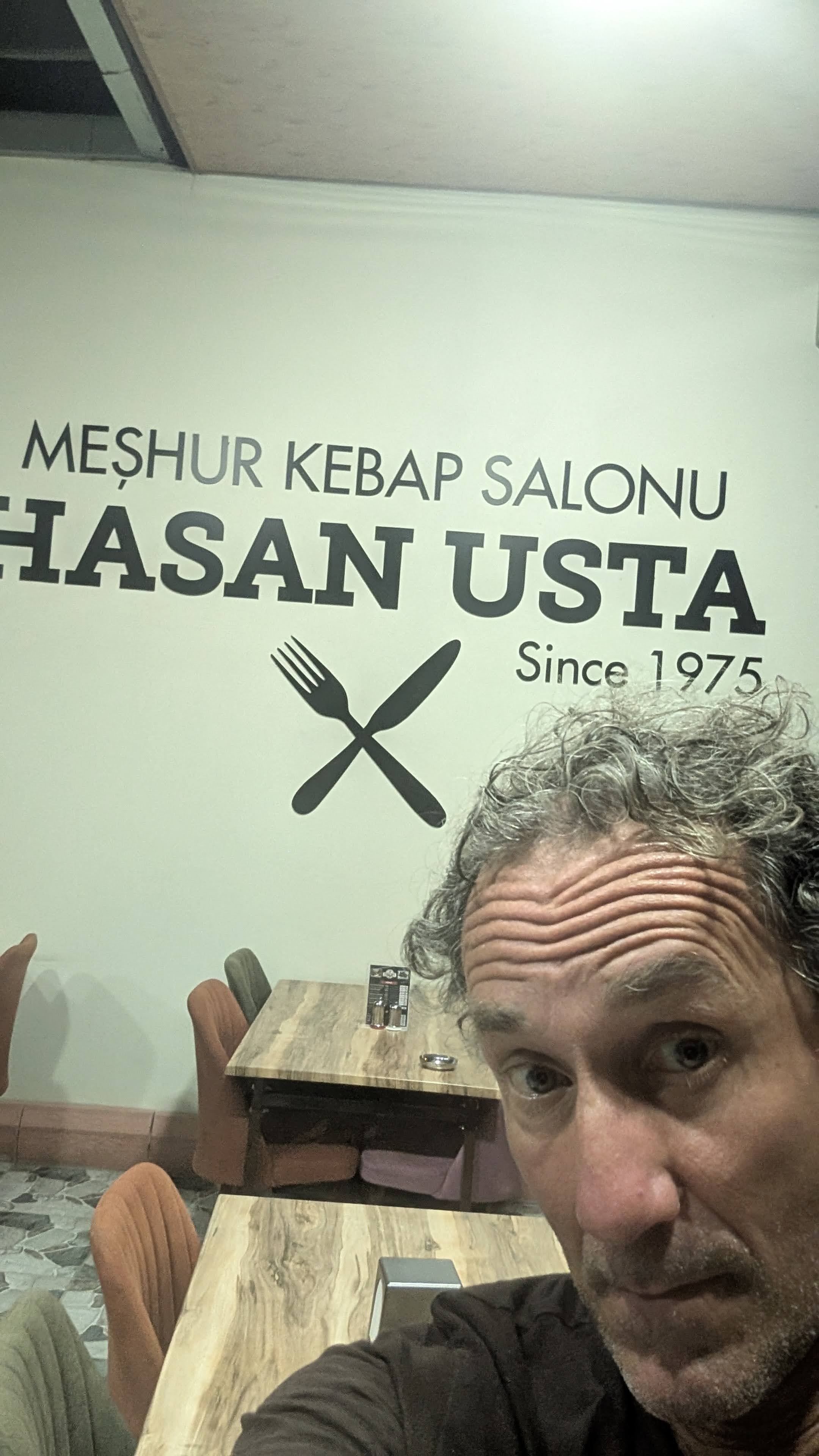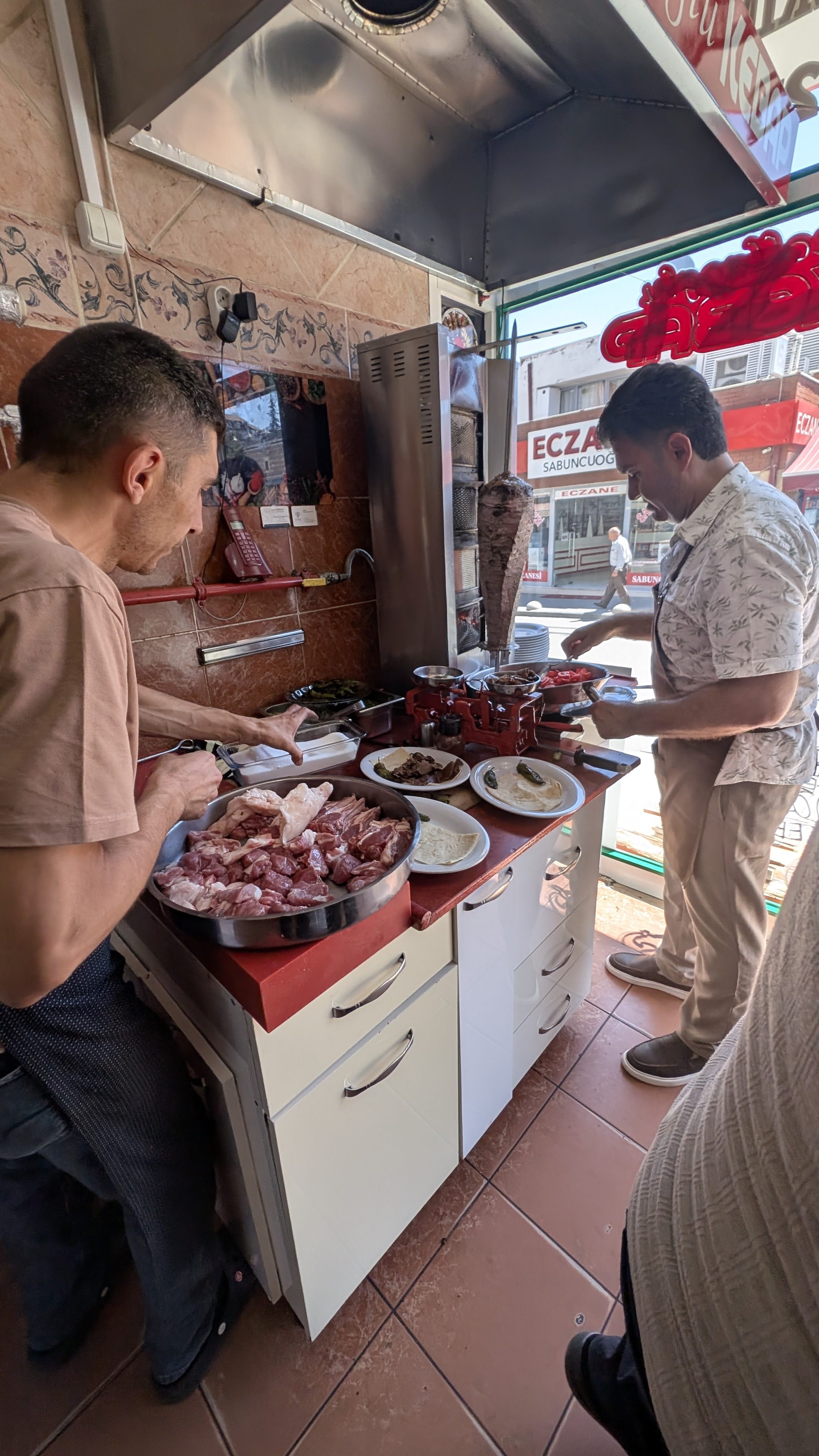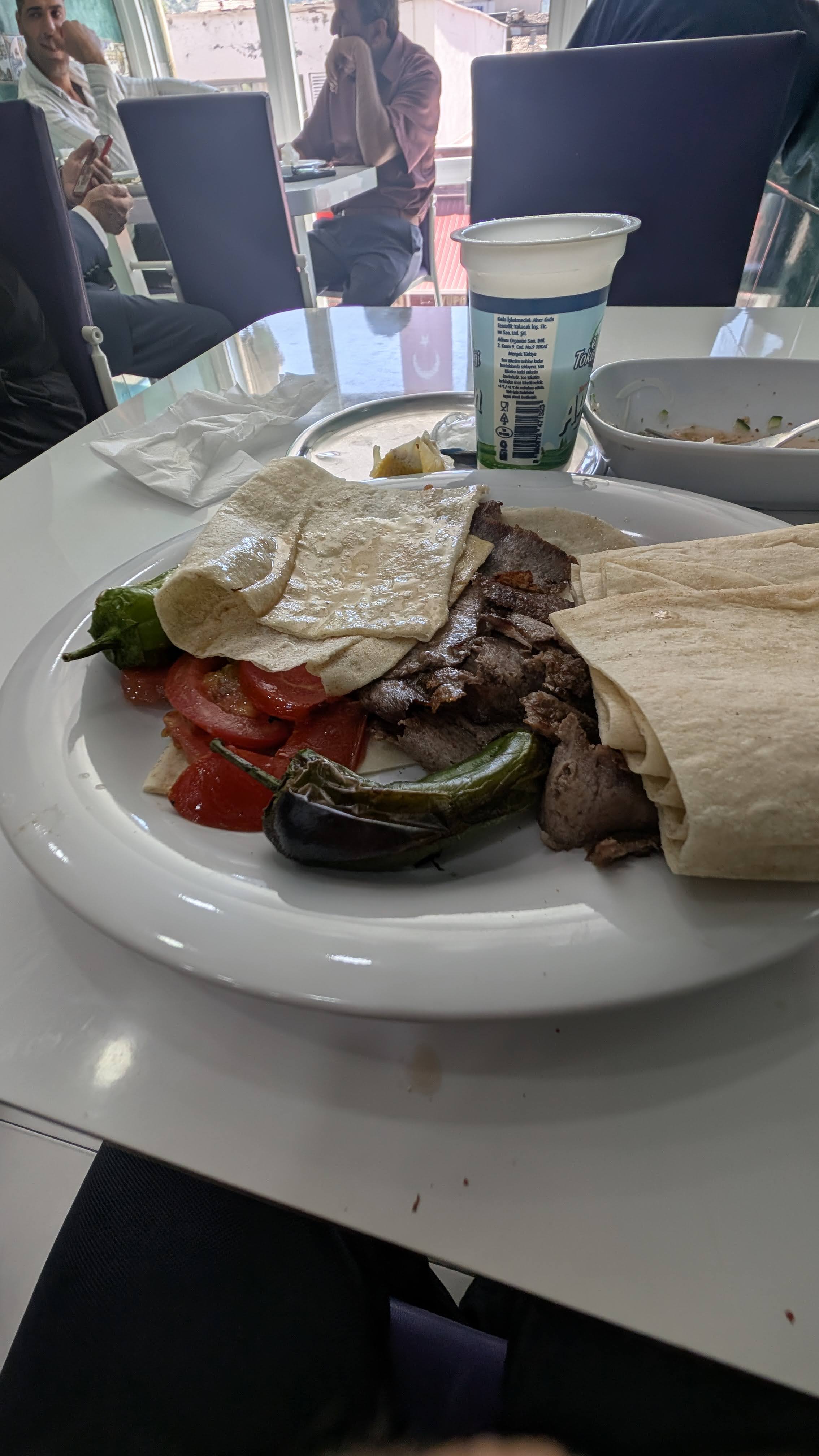 Doccia poi esco e mangio vicino un piatto di sis kebab 340 TL e ayran grande 30. 370 TL.