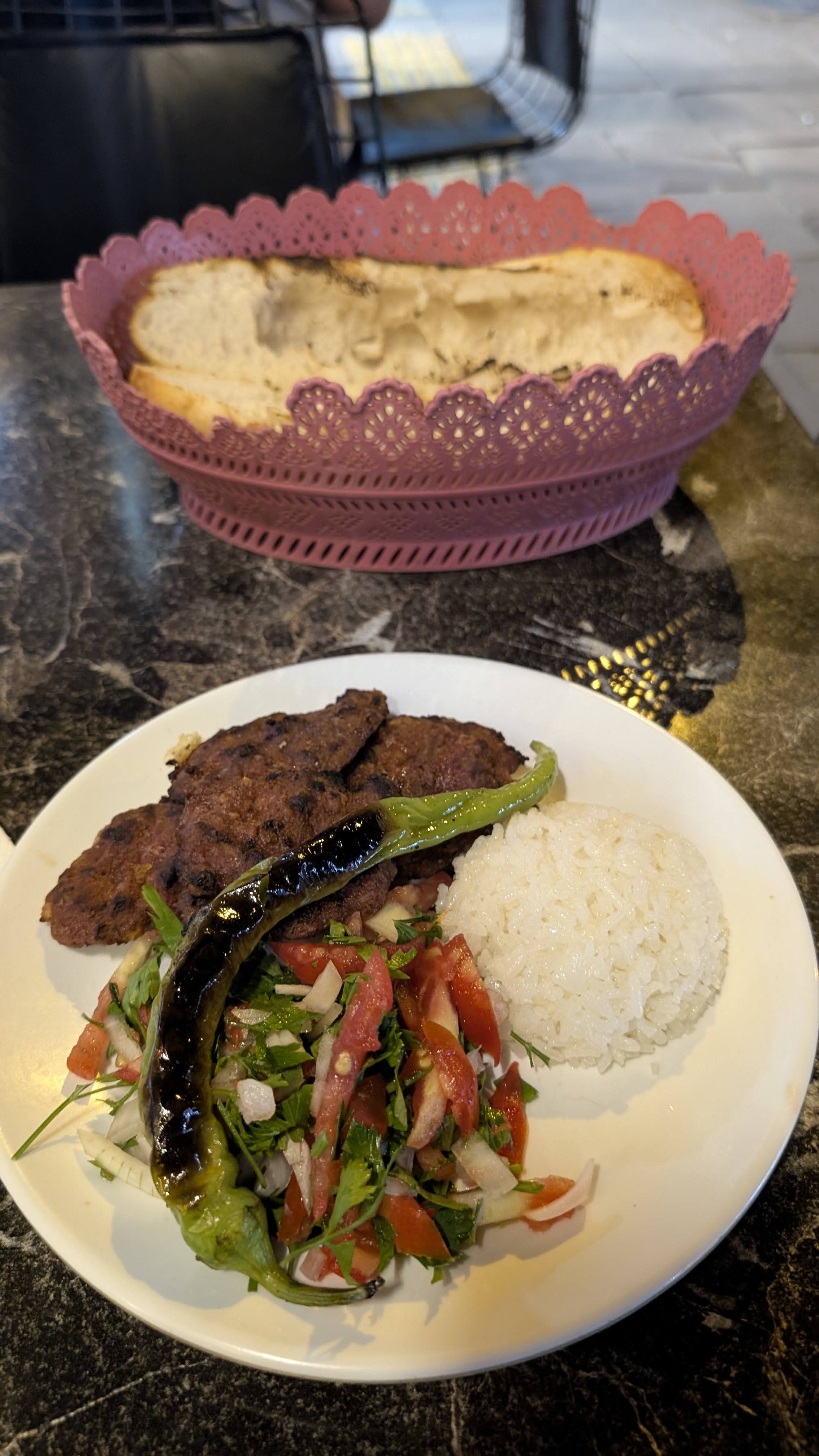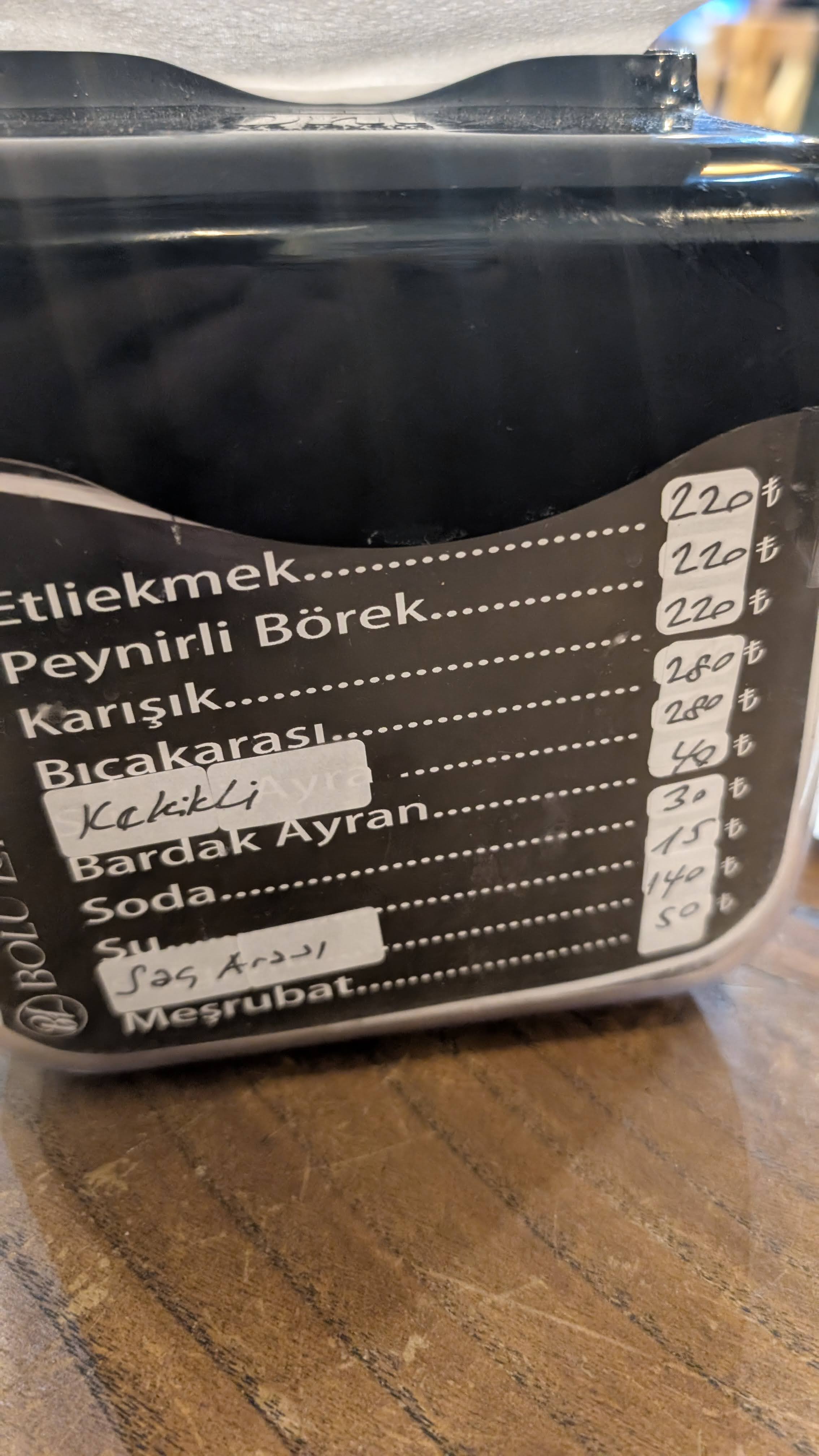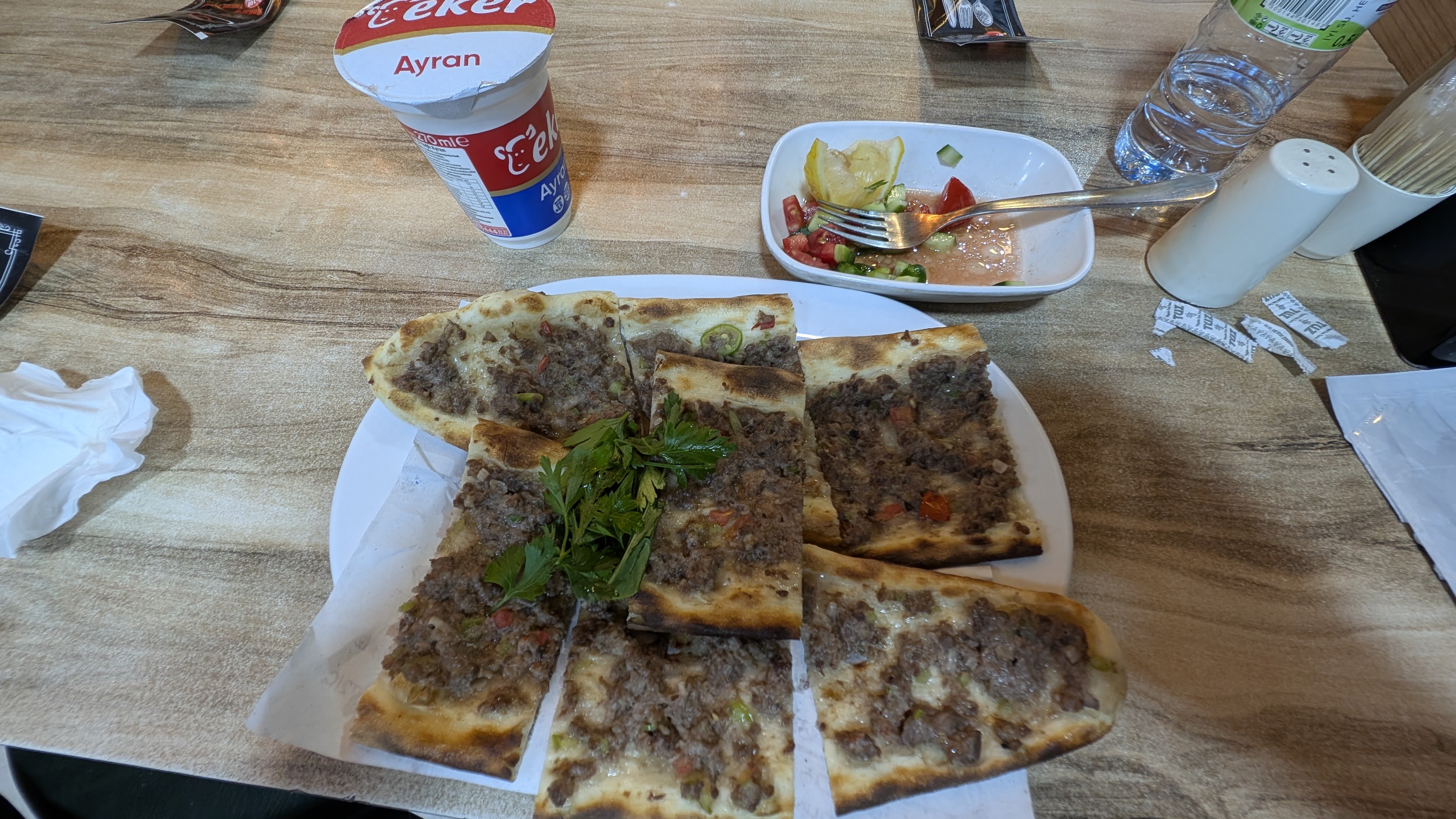 Doccia poi esco e mangio vicino un piatto di sis kebab 340 TL e ayran grande 30. 370 TL.