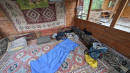 Qui resterò durante la notte per cercare di dormire, per terra...