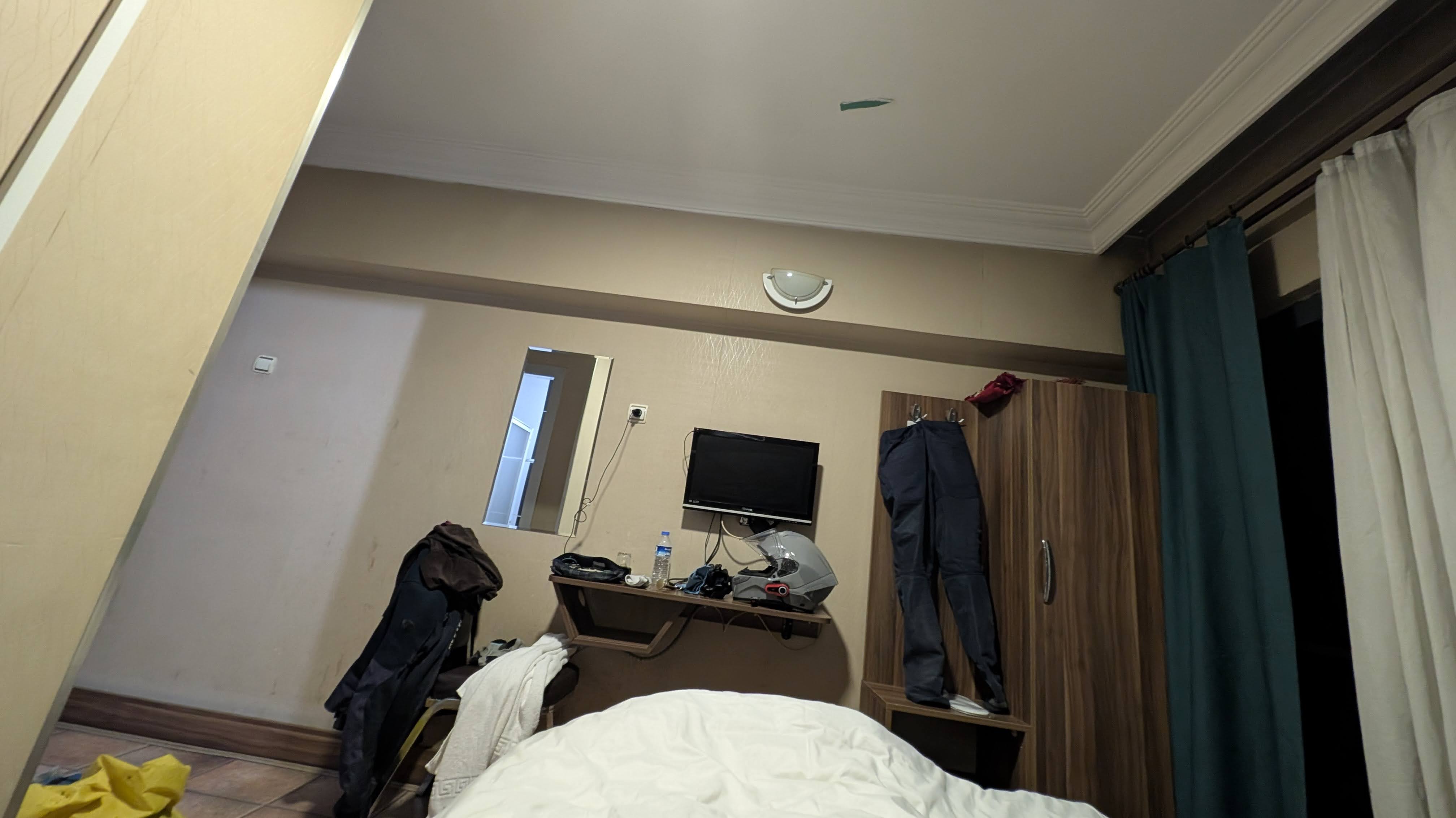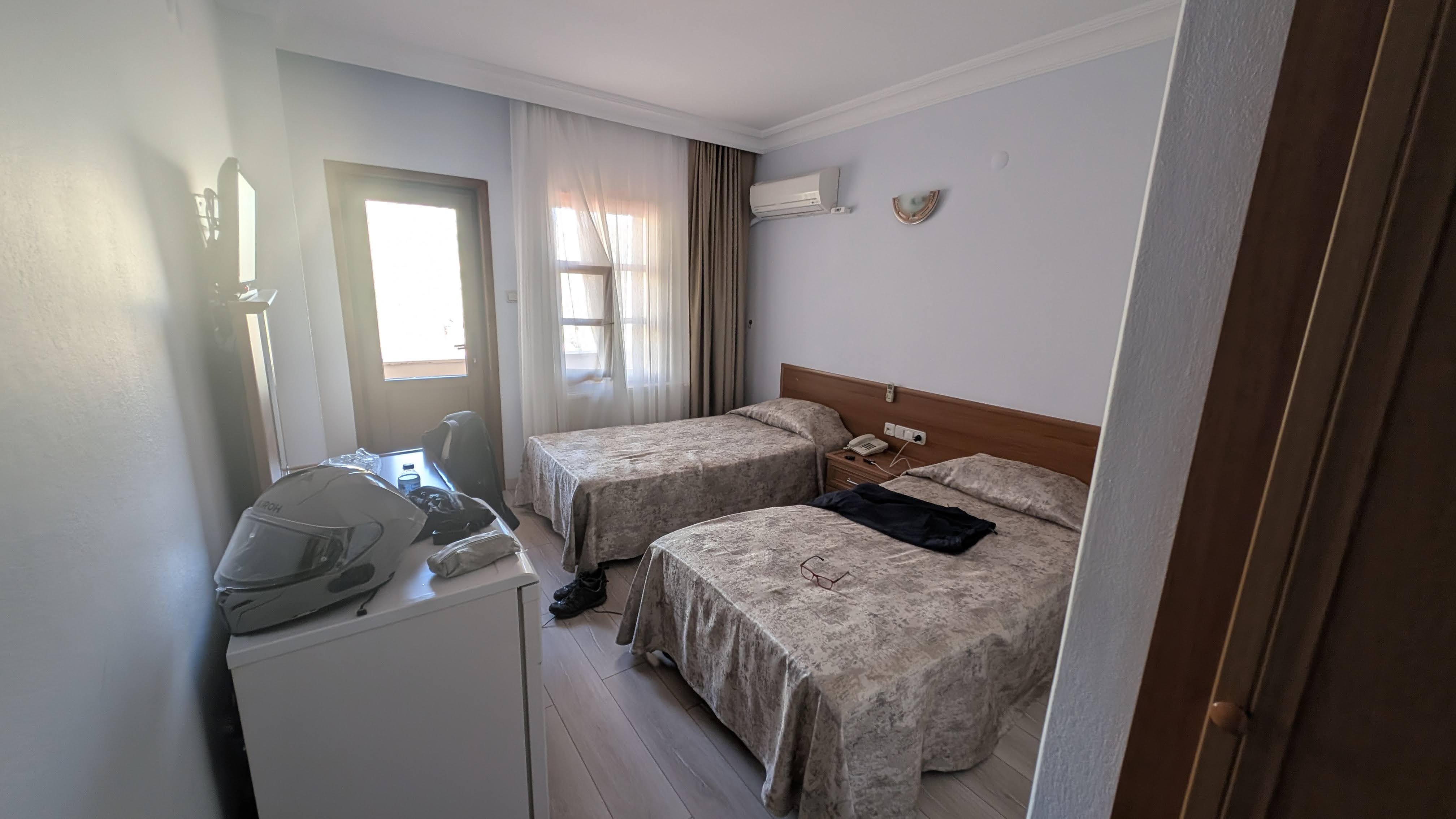 Cerco in giro un hotel, mi fermo proprio davanti al Marmara hotel dove una camera costa 1500 TL (circa 32 €). Accetto, lascio la moto nella stradina parallela tra 2 auto una delle quali sembra lì da secoli...