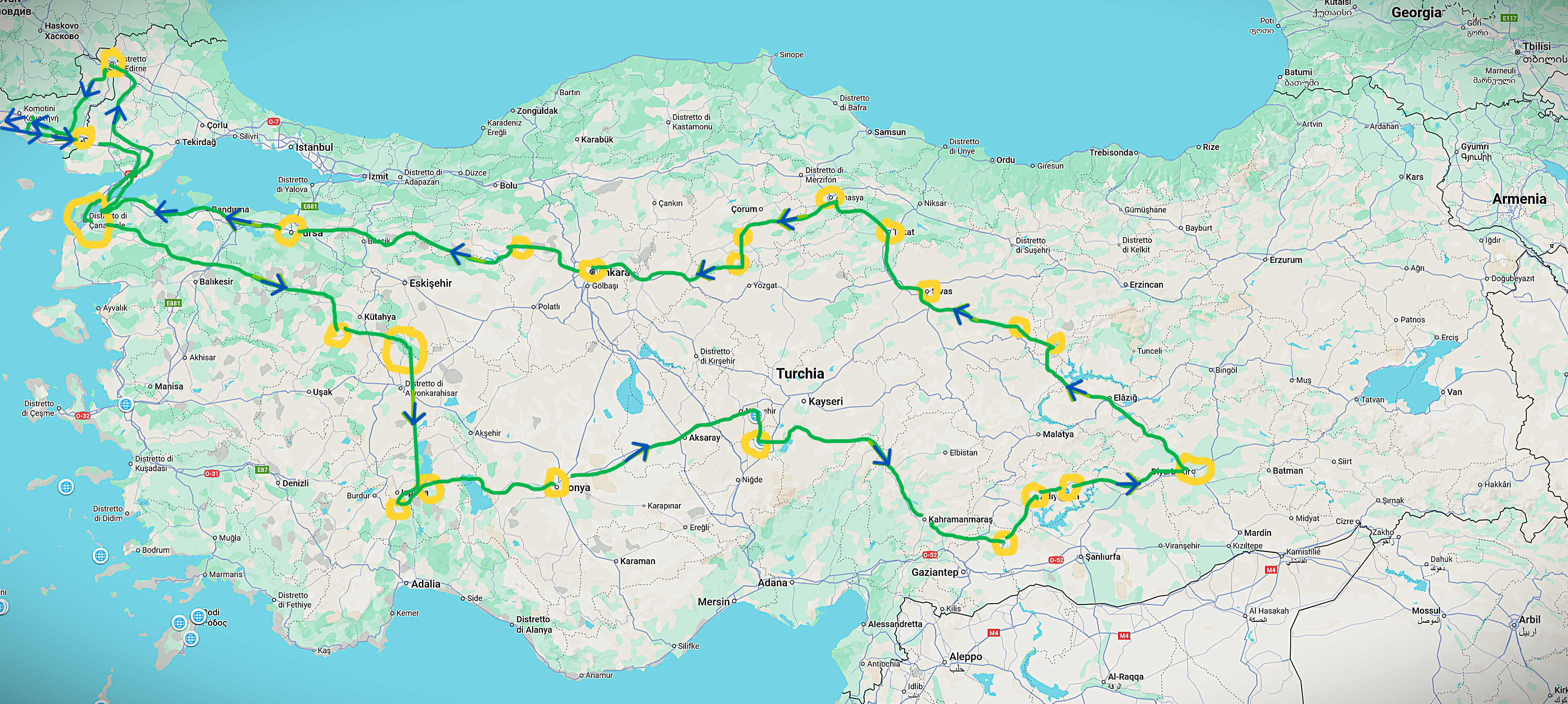 In questo modo eviterò di passare dai Balcani arrivando già in Grecia e da lì continuare fino al confine con la Turchia.