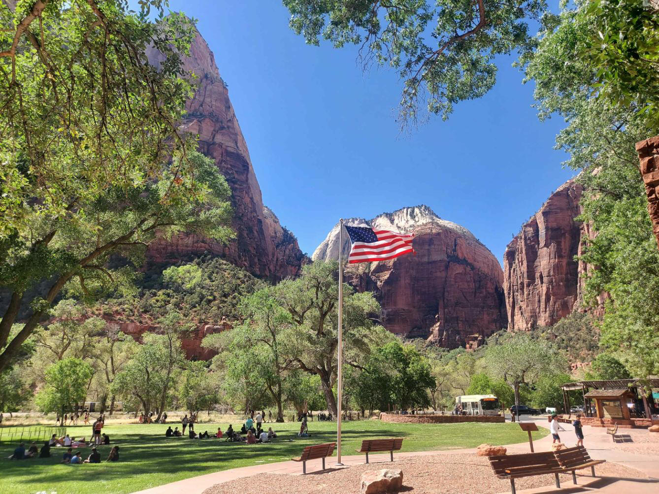 Pernottamento: Zion Lodge, Zion National Park. Magnifica stanza con terrazzino dentro una struttura in legno, la soluzione migliore sia per entrare nello Zion evitando la folla del centro visitatori (il pernottamento vi permette di accedere con un codice alla strada riservata solo alle navette), sia per avere la possibilità di passeggiare a pochi metri dai caprioli che si affacciano in zona la sera. Molto accoglienti anche le varie sale comuni. Costo (ben) 285$ per una notte (senza colazione).
