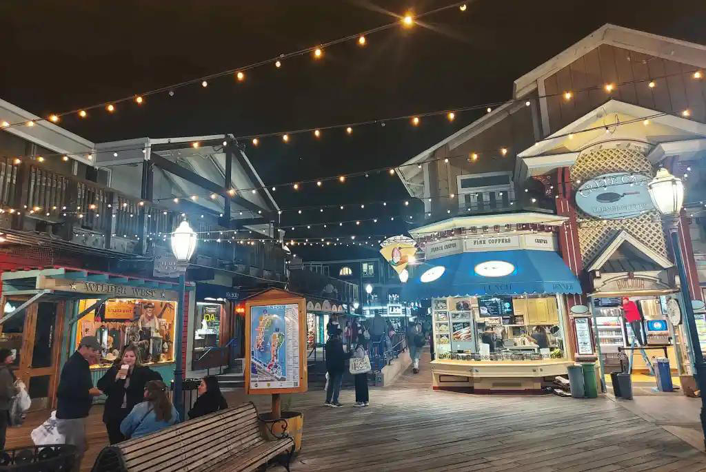 Pier 39. Più o meno qui inizia la Fisherman’s Wharf. Il Pier 39 è un animatissimo punto di ritrovo con ristoranti, negozi e qualche giostra per bambini. Il posto è noto anche perché tutto intorno al molo hanno preso dimora leoni marini e foche che sono oramai diventati un altro simbolo cittadino: ce ne sono tantissimi e ne vedrete molti sdraiati al sole, ma altri azzuffarsi per un posto sulle pedane. Il posto è molto piacevole oltre a prestarsi per diverse foto scenografiche lungo le passerelle: ci fermiamo per acquistare qualche souvenir e per la cena al il ristorante Pier Market che fa ottimo pesce e quindi ne approfittiamo per liberarci da hamburger e patatine.