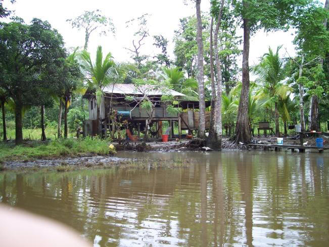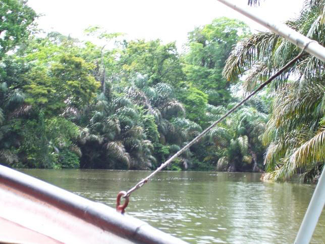 Il percorso non è brevissimo ma arriviamo in tempo per prendere il primo autobus in direzione Puerto Limon. Da lì prendiamo subito il bus locale e alle 9.00 siamo a Moin. Cerchiamo in fretta un passaggio in lancia per il Tortuguero. Conosciamo un tipo loquace ma molto simpatico che ci intorta parlando di calcio e del nuovo Papa. Partiamo di corsa perché in direzione del parco ci sono nuvoloni carichi di pioggia che non lasciano ben sperare. La costa attorno al canale è fitta di foresta di un verde semplicemente fantastico. In circa quattro ore di navigazione, solo stando seduto comodamente sulla mia lancia, già ho visto una varietà di fauna che già da sola mi fa affermare di essere capitato in un posto unico!... caimani, una scimmia urlatrice, pellicani, un bradipo, la gata blanca, lucertoloni verdi tipo iguana e tantissimi uccelli con bellissimi piumaggi colorati. Il biglietto lo facciamo di solo andata, perché il ritorno abbiamo deciso di farlo navigando il rio Tortuguero in direzione Oro Cariari. Dopo una breve sosta in una Finca lungo il rio, alle 14 siamo arrivati. L’impatto è pacificante. Ci troviamo in un villaggio fuori dal mondo, un po’ di baracche qua e là e gente che gira il villaggio scalza. Ci accoglie un amico del nostro loquace capitano di vascello che ci porta a fare un giro alla ricerca di un posto dove alloggiare. Scegliamo “Cabinas Aracari”. Una baracca ma almeno ha l’acqua calda malgrado ci siano formiche e blatte a farci compagnia. Domani andremo col sensale a fare un giro in canoa. Il pomeriggio lo passiamo in spiaggia dopo aver percorso un breve sentiero nella vegetazione. Per prima cosa ho fatto un tuffo del Mar dei Caraibi, il sole è nascosto ma sento la pelle già calda… meglio coprirsi. La playa è selvaggia… il mare è mosso… Di notte proprio in quel tratto di costa ma purtroppo non in questa stagione, nidificano le tartarughe, che liberano migliaia di uova che schiudendosi sono un vero spettacolo di vita. Scambiamo quattro chiacchiere in spagnolo con due turiste svizzere seduti su un tronco portato dal mare. Adoro le forme arrotondate che assume il legno reso liscio dal sale e dal vento, che muove la sabbia, che a sua volta lo smeriglia modellandolo in forme armoniche. il sole si è nascosto dietro le nuvole ma il calore si sente sulla pelle secca di sale. Meglio coprirsi. Tornando facciamo un giro in mezzo alle palafitte e baracche colorate del villaggio come le amache piantate dappertutto. È pieno di bambini che giocano e corrono. Incontriamo Angel col quale pratichiamo un po’ di spagnolo. Lui è in compagnia di un amico detto “Zapata” e tutti e quattro insieme andiamo alla ricerca del “Bananero” col quale concordiamo il ritorno per Oro Cariari a 10 USD.