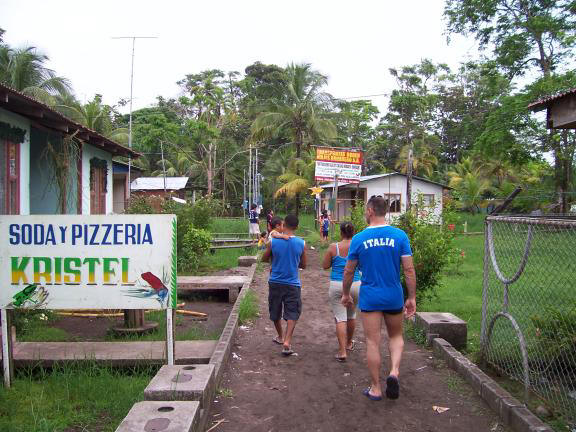 Non lontano incontriamo dei turisti che ci incitano a seguire un sentiero dove hanno avvistato delle scimmie. Io e Fabio ci fiondiamo a cambiarci in stile Indiana Jones e dopo poco imbocchiamo il sentiero ma siamo sconsigliati da un Ninos per la pericolosità di serpenti caimani e animali vari…. indovinate? … ce ne torniamo alla nostra cabinas… morti per due ore di sonno di gusto… ci voleva dopo giorni intensi. Appena svegli usciamo per mangiare. Ci fermiamo in un posto guarda il caso gestito da un italiano. Ad accoglierci Andreas il cui padre Italiano ha sposato una costaricense e da anni oramai vivono in Costarica. Lui ha imparato cosi bene lo spagnolo che lavora come traduttore al Tribunale di San Josè. Mangiamo lasagne al palmitos. Finito di mangiare facciamo una passeggiatina prima di entrare in un disco bar e ordiniamo una immancabile birra “Imperial”. Siamo stanchi e la birra ci ha rilassato talmente tanto da indurci a tornare in camera e buttarci a letto. Domani ci aspetta un'altra bella giornatina!