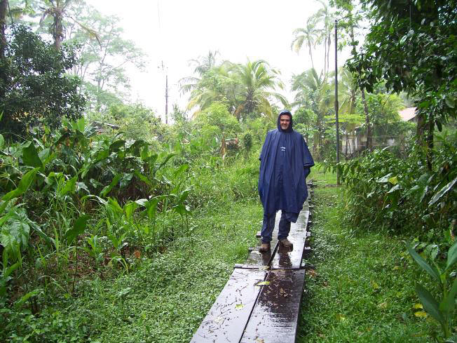 Torniamo al villaggio e la pioggia aumenta. Oramai ci siamo abituati alla pioggia costante e all’umidità… siamo affamati e ci fermiamo alla “Soda Cristel”. Mangiamo uovo frittellato, dulce, pane e marmellata il tutto sorseggiando un caldissimo caffellatte per 2000 colon in due. Nella soda incontriamo Angel, fanatico del Milan, col quale scambiamo due parole sul calcio e poi passiamo a parlare del tempaccio di quei giorni. Angel ci preannuncia che la lancia per Cariari non è coperta… bene! Salutiamo Angel e ci andiamo a preparare.