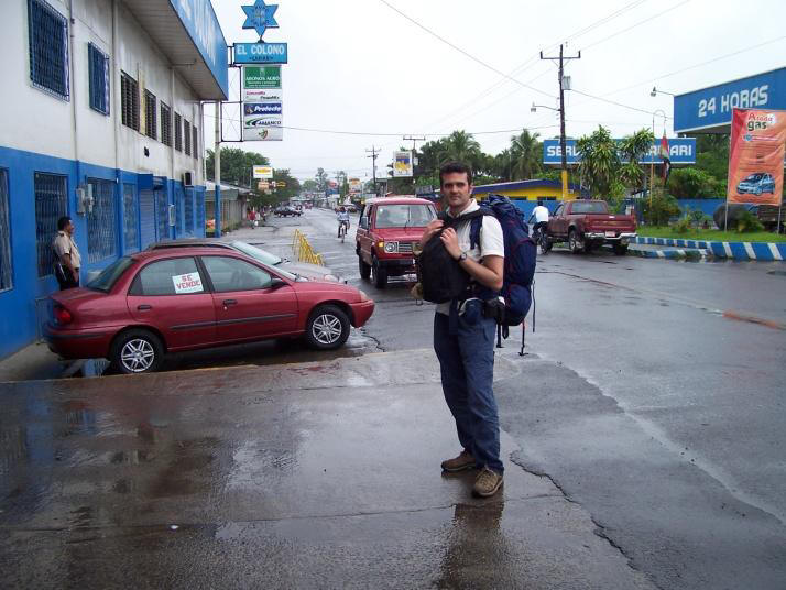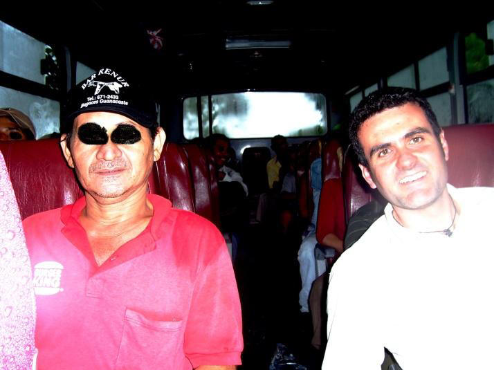 C’è fango dappertutto e tutti, compreso il bananero, ci rifuggiamo sotto una pensilina di legno posticcia aspettando il bus per Cariari. Sotto la pensilina facciamo amicizia con Ellliot, un campesinos della zona, con il quale scambiamo quattro chiacchiere. Finalmente alle 13 passa il bus che si ferma per mezzora prima di ripartire e dove continuiamo piacevolmente a parlare con Elliot. Ha un negozio non si capisce bene di cosa e possiede una “finca” proprio sul rio suerte, vicino alla fermata del bus. Parliamo delle piante di banane che ci circondano in distese interminabili di piantagioni intensive. Ho capito che le piante di banane diventano adulte dopo 9 anni e maturano in tre mesi. Poi si finisce a parlare di droga che entra nel paese proveniente dalla Colombia da dove viene trasportata con imbarcazioni velocissime sulla costa e da li in tutto il paese. Il controllo americano è continuo e spesso i gringo sparano sui contrabbandieri in virtù di accordi bilaterali per la lotta al narcotraffico e delle due basi dei marines sia in Costarica che a Panama. Elliot racconta che le banane vengono prodotte maggiormente in Costarica (cichita, dolè…) e che vengono colte ancora verdi e stivate in container per l’Europa e dove maturano lungo il viaggio a causa del caldo delle stive. Intanto tra una buca e l’altra arriviamo a Cariari dove facciamo subito il biglietto per San Jose. Partiremo alle 15.00 per arrivare alle 17.00 circa nella capitale. Siamo bagnati, stanchi, i sedili sono stretti e con Fabio ci dividiamo per stare più larghi. Continua a piovere e alla radio trasmettono una canzone in spagnolo di Ramazzotti. Ho sonno e chiudo il mio diario di viaggio. Arriviamo al Terminal Caribe in orario e mentre Fabio va in bagno io cerco un tassista e concordo un passaggio per il Terminal Coca Cola a 800 colon. Sugli schermi danno la partita di calcio del Deportivo Saprissa. Vedo Fabio e montiamo sul taxi. Arrivati al Coca Cola ci accorgiamo che per il bus per Quepos c’è ancora tempo e ne approfittiamo per scrivere a casa da un un’internet caffè e scaricare le centinaia di foto fatte nell’hard disk da viaggio. In questo terminal si aggirano le persone più colorate. C’è un pazzo che interpreta una storia urlando, credendo forse di essere un attore. Un vecchietto che chiede l’elemosina. Un lustrascarpe che lucida los zapatos al nostro autista. Un transessuale che corre appresso al suo cane che scappa. Una guardia mi passa accanto e indicando il bagaglio mi dice: “Quidado a la mochila”. Urla, Clacson ed un brusio che ci accompagna alla partenza. Alle 19.30 partiamo per Quepos, anche qui ognuno ad occupare tre posti. Io dormo mentre Fabio chiacchiera con una che nel frattempo gli si è seduta accanto. Ad un certo punto del viaggio, leggendo la guida mi accorgo che il lunedì il parco di Manuel Antonio è chiuso… cavolo!! Dobbiamo cercare qualcos’altro da fare per domani!!